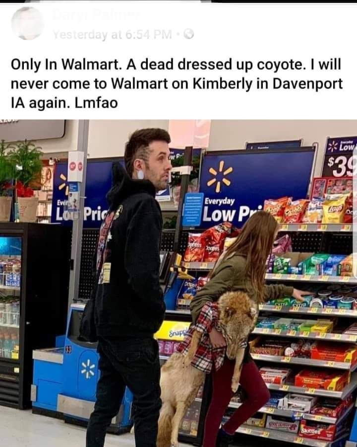 #14. Shopping in an NC Walmart right now and this man has a live possum on his shoulder 😂🐀